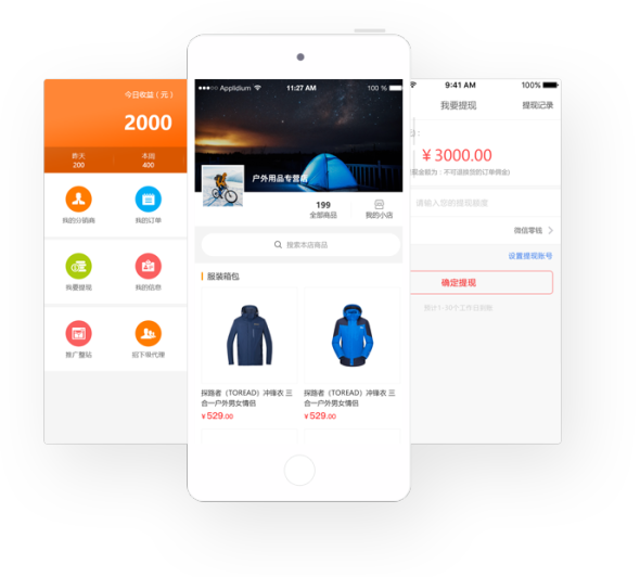 多种模式选择万人分销+传统代理+区域分销+微小店