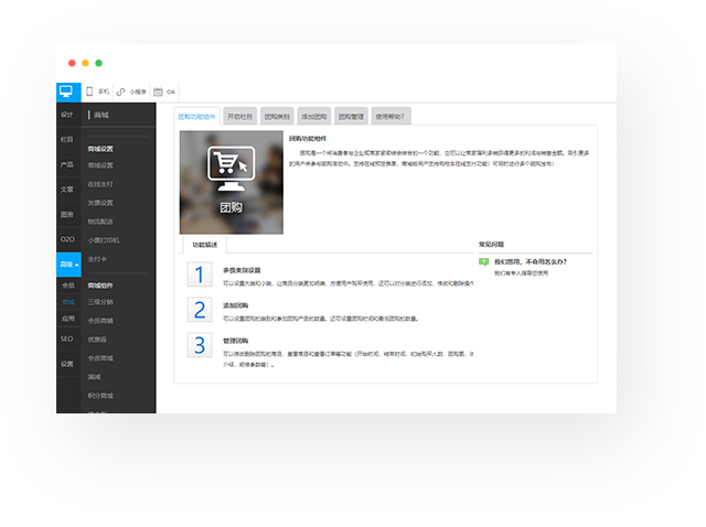 美丽的店铺从装修开始,近二十种可视化的装修组件以及平台自带默认页面模板,可以装修出个性化,独特而又漂亮的店铺模板,让您的店铺与众不同