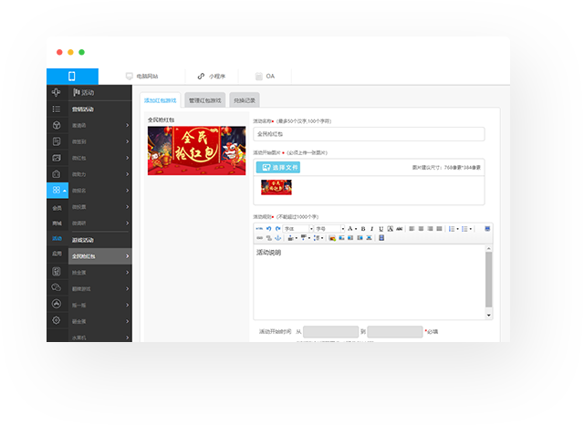 客户营销不能只是打折促销。平台应用包括了限时拼团、全民抢红包、拾金蛋、翻牌游戏、摇一摇、推文管理等营销玩法,把消费变成了一种“游戏”,有趣、有效果。